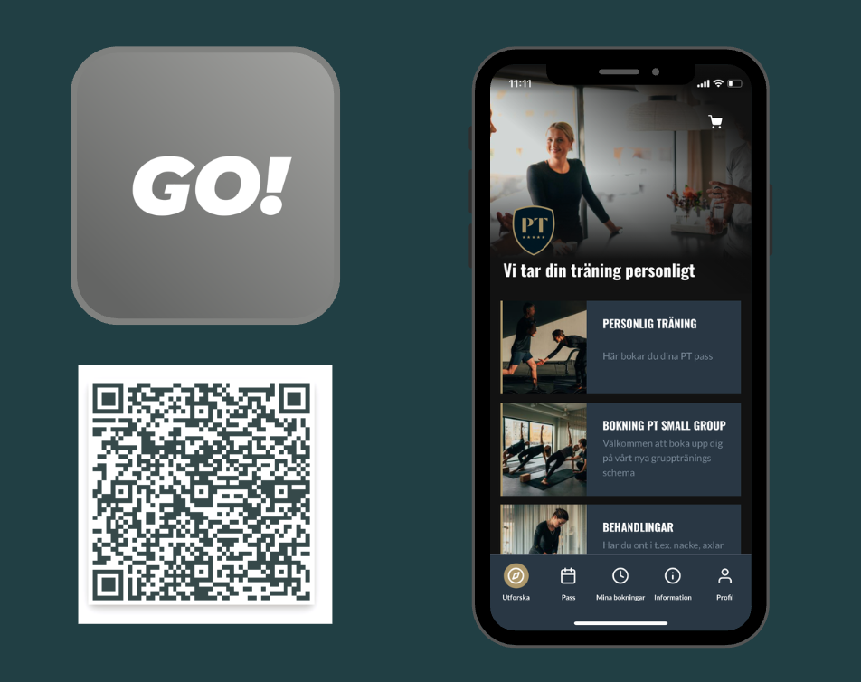 Ladda ner appen via QR-koden till höger eller sök på “Go Active” i playbutik/appstore.